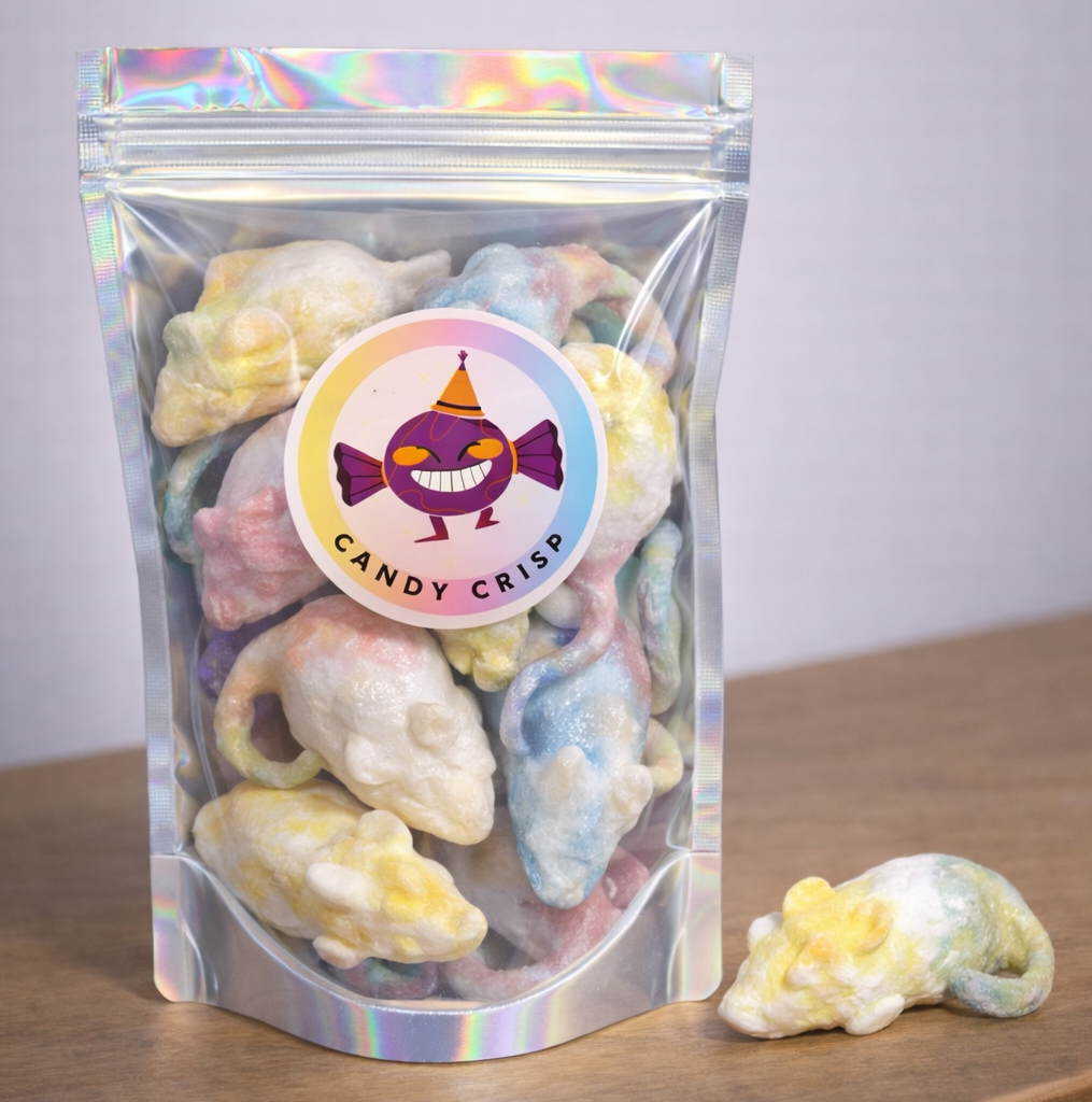 Découvrez Souricette, notre souris lyophilisée trop mignonne. Son corps croquant et sa queue aérée fondent dans votre bouche pour une expérience gustative unique.